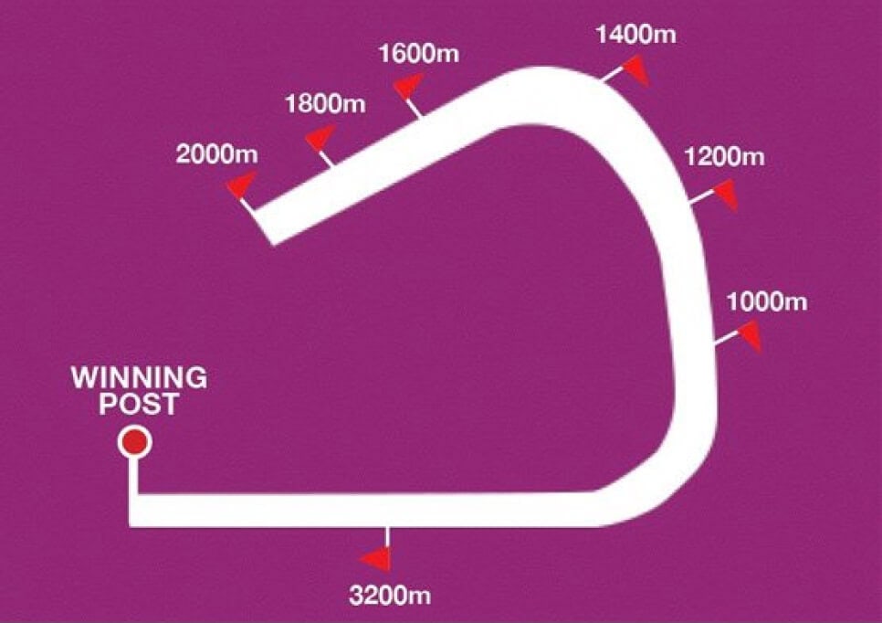 Turf. 2800m oval track. Races up to 1000m straight course; beyond 1000m clockwise round turn with 1000m run-in. Draw: Low-number draws favoured over 1200m and 1450m.