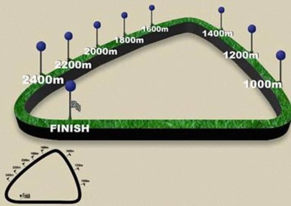 S UP TO 1600M STRAIGHT COURSE; BEYOND 1600M CLOCKWISE ROUND TURN WITH 1000M RUN-IN. OUTSIDE AND INSIDE TRACKS. OUTSIDE TRACK COMPRISES OUTSIDE HALF OF 1600M STRAIGHT COURSE ONLY. INSIDE TRACK COMPRISES INSIDE HALF OF 1600M STRAIGHT COURSE AND THE TURN JOINS THE STRAIGHT COURSE AT THE 1000M MARK. INSIDE TRACK HAS LONGEST CIRCUMFERENCE, RUN-IN AND STRAIGHT COURSE IN SA. DRAW: LOW-NUMBER DRAWS SLIGHTLY FAVOURED IN 1700M RACES.